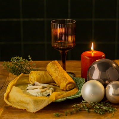 Crepes de Lascas de Bacalhau com Creme de Brócolos